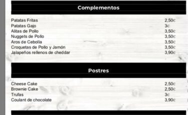 Encuentra nuestra carta en la galería de imágenes o pulsando el link de Drive que verás más abajo